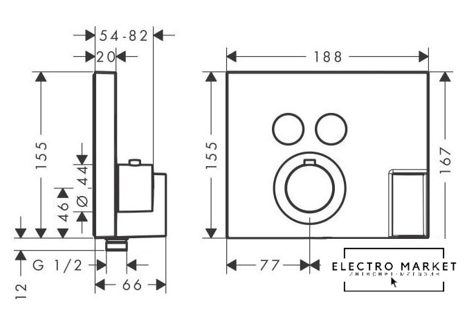 термостатический смеситель для ванны и душа, монтаж скрытый