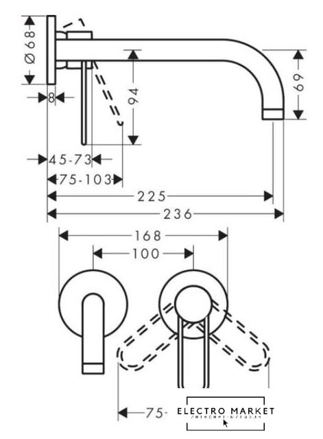 | Длина (вылет) излива | 225 мм |