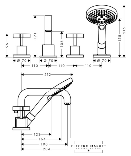 однорычажный смеситель для отдельностоящей ванны, монтаж на пол