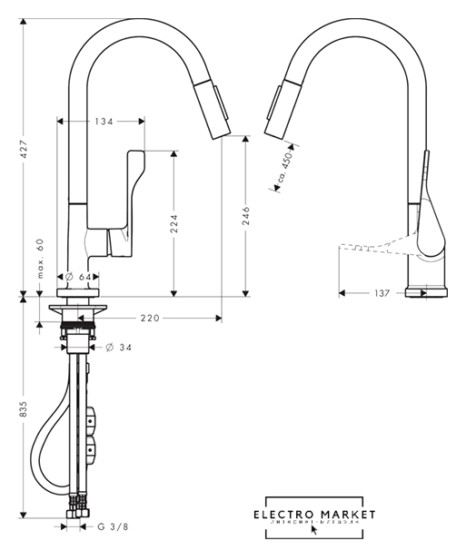 однорычажный смеситель для мойки, монтаж на раковину или столешницу