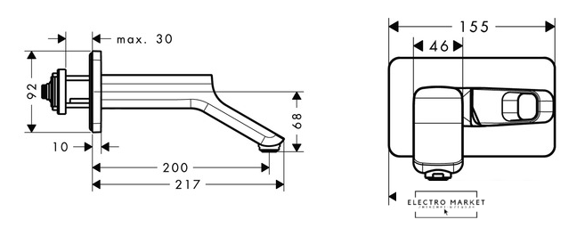 однорычажный смеситель для ванны и душа, монтаж на ванну или полку