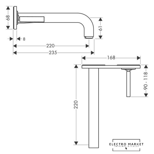однорычажный смеситель для ванны и душа, монтаж на стену