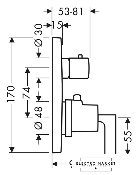 термостатический смеситель для ванны и душа, монтаж скрытый