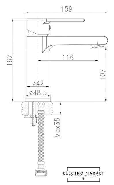 однорычажный смеситель для умывальника, монтаж на раковину или столешницу