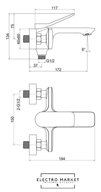 однорычажный смеситель для ванны и душа, монтаж на стену