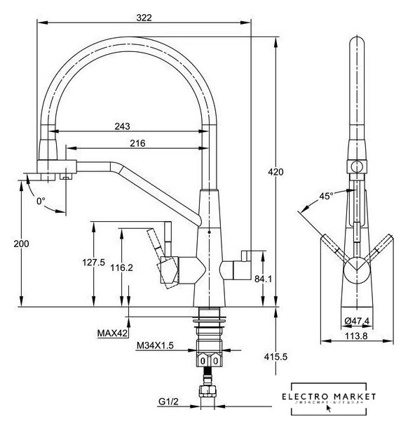 | Поворотный излив | 360 ° |