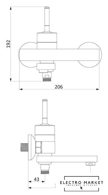 однорычажный смеситель для ванны и душа, монтаж на ванну или полку