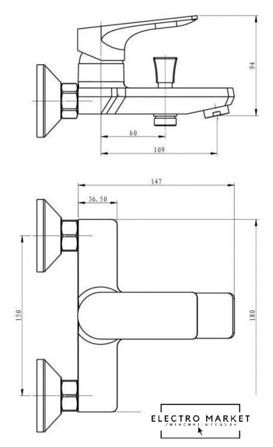 однорычажный смеситель для ванны и душа, монтаж на стену
