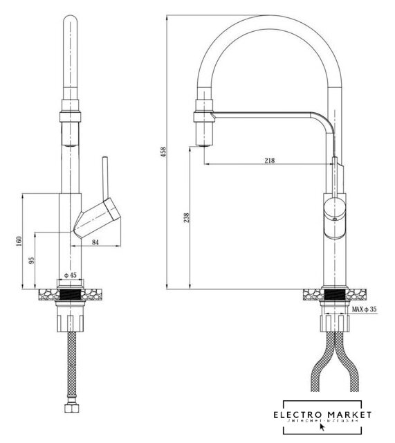 однорычажный смеситель для кухни, монтаж на раковину или столешницу