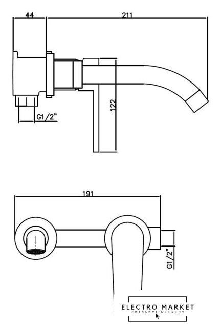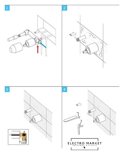однорычажный смеситель для ванны и душа, монтаж на стену
