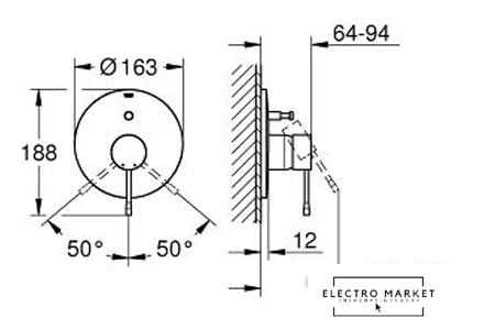однорычажный смеситель для душа, монтаж на стену