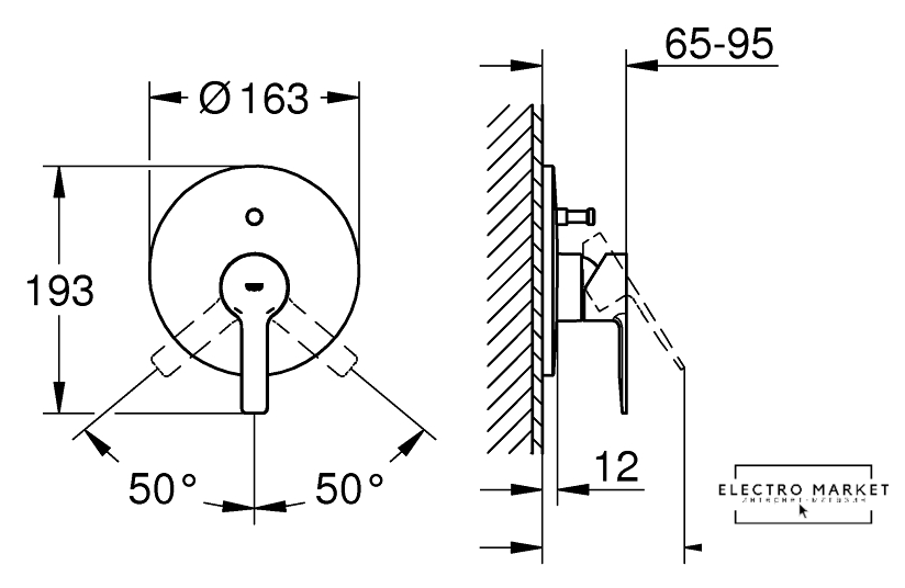 однорычажный смеситель для ванны и душа, монтаж на стену