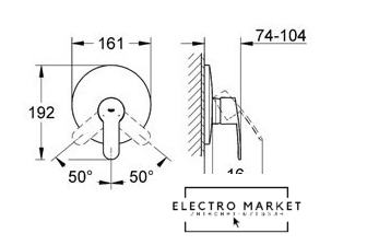 однорычажный смеситель для душа, монтаж скрытый