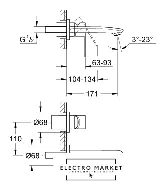 однорычажный смеситель для ванны и душа, монтаж скрытый