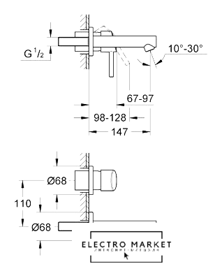 однорычажный смеситель для душа/для ванны, монтаж на стену