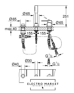 двухвентильный смеситель для умывальника, монтаж скрытый