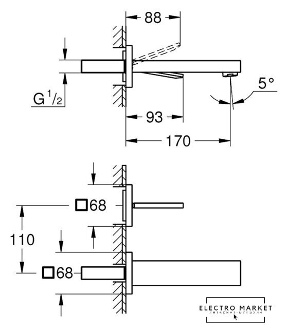 однорычажный смеситель для ванны и душа, монтаж скрытый