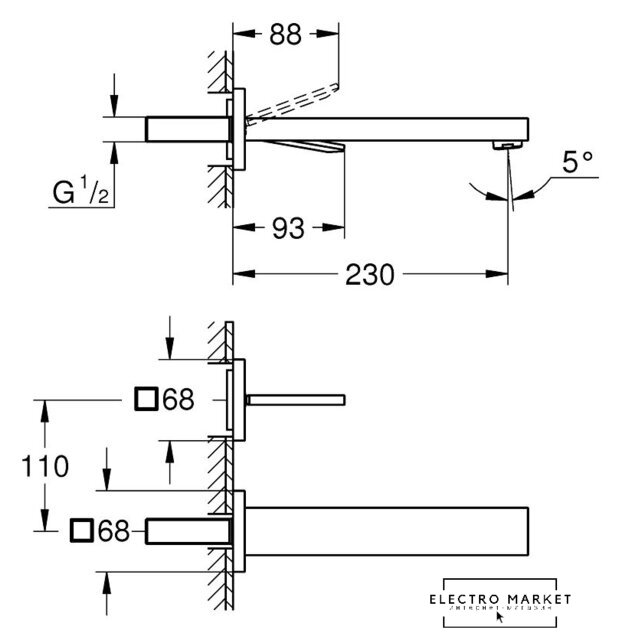 однорычажный смеситель для ванны и душа/для душа, монтаж скрытый