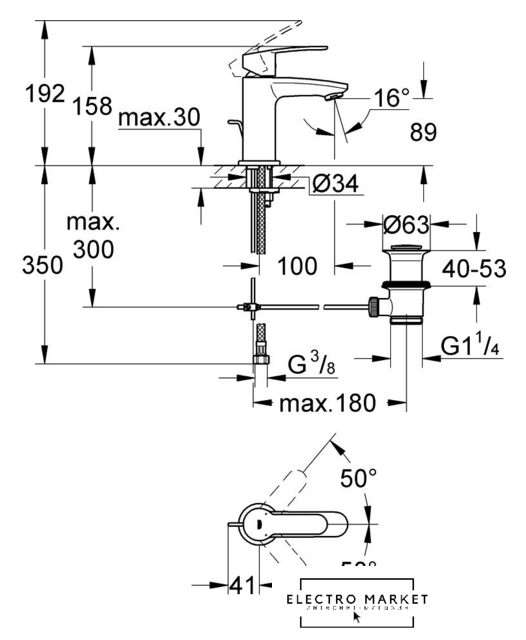 однорычажный смеситель для умывальника, монтаж на раковину или столешницу