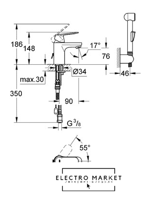 | Длина (вылет) излива | 90 мм |