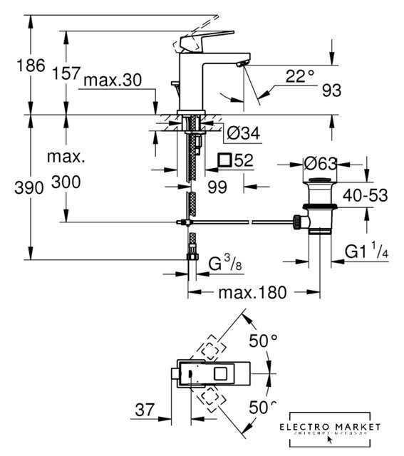 однорычажный смеситель для ванны и душа, монтаж на стену