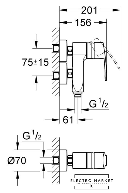 однорычажный смеситель для ванны и душа, монтаж скрытый