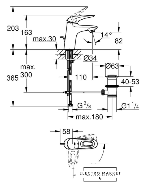 однорычажный смеситель для ванны и душа, монтаж скрытый
