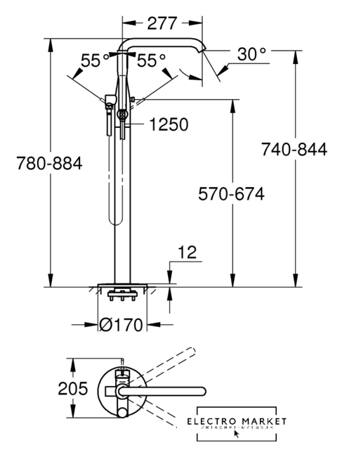 смеситель, монтаж на пол