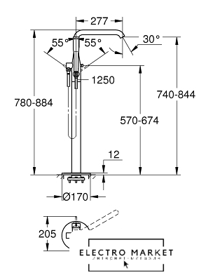 смеситель, монтаж на пол