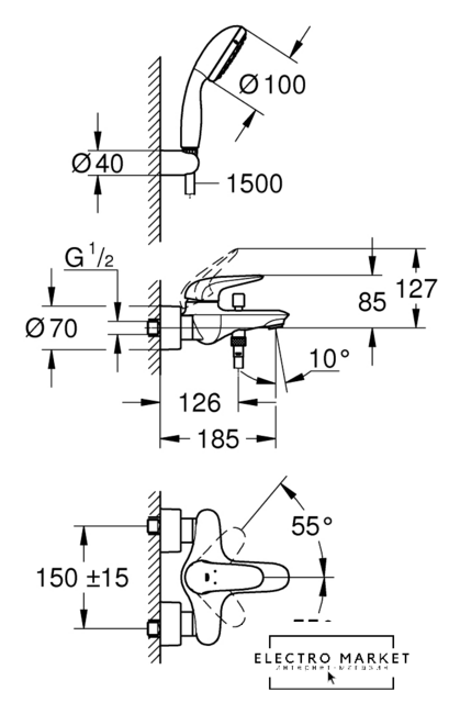однорычажный смеситель для ванны и душа, монтаж на стену