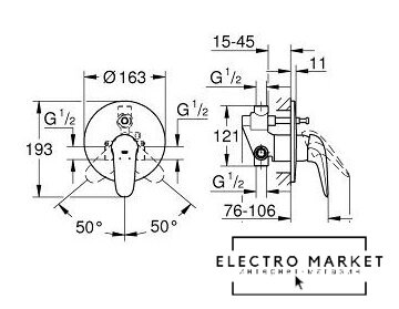 однорычажный смеситель для ванны и душа, монтаж на стену