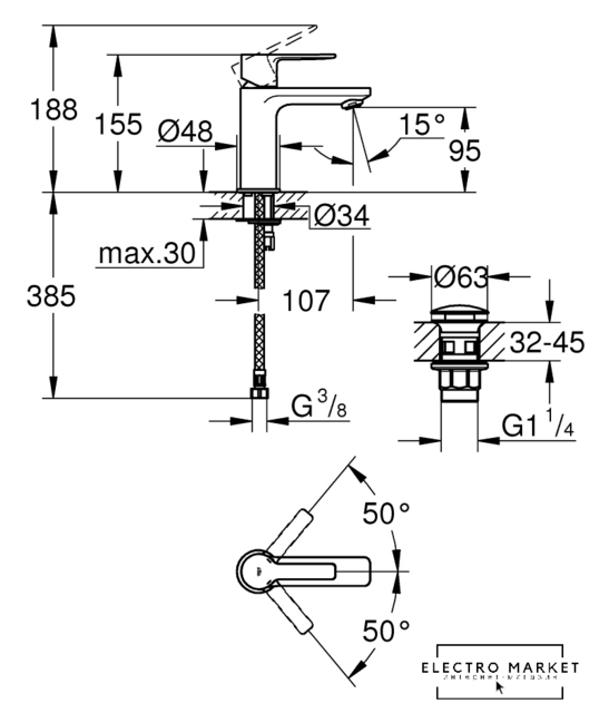 Длина (вылет) излива | 107 мм |