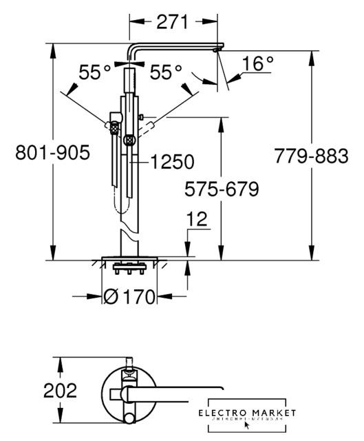 однорычажный смеситель для отдельностоящего умывальника, монтаж на пол