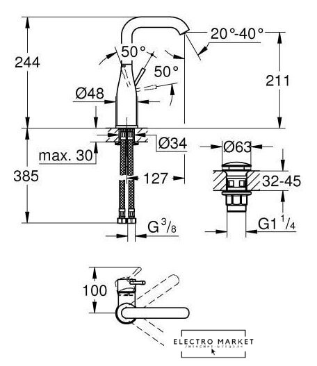 однорычажный смеситель для умывальника, монтаж на раковину или столешницу