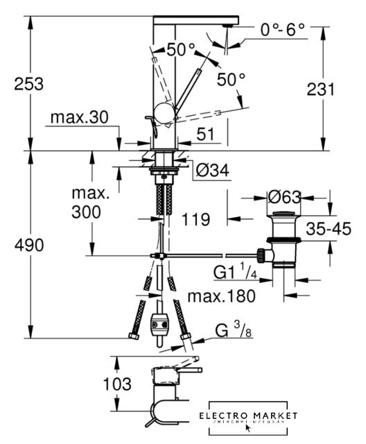 Поворотный излив | 90 ° |