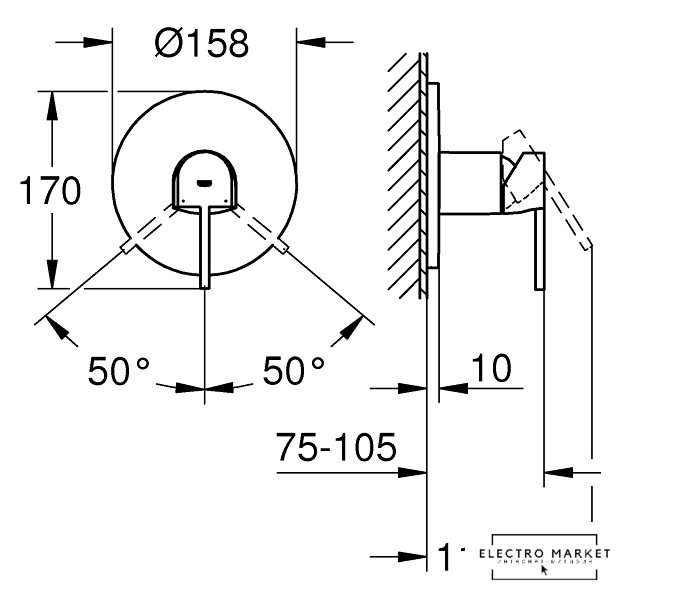 однорычажный смеситель для ванны и душа, монтаж на стену