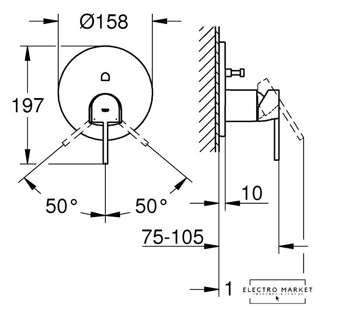 однорычажный смеситель для ванны и душа, монтаж на стену