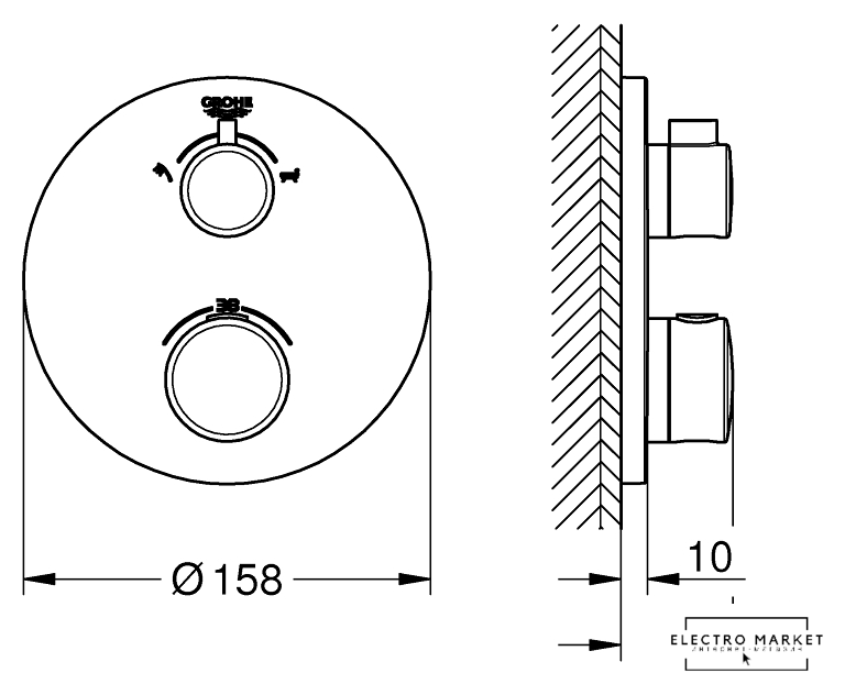 однорычажный смеситель для ванны и душа, монтаж на стену