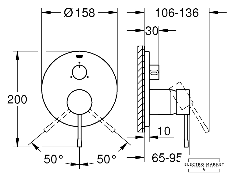 термостатический смеситель для душа, монтаж на стену