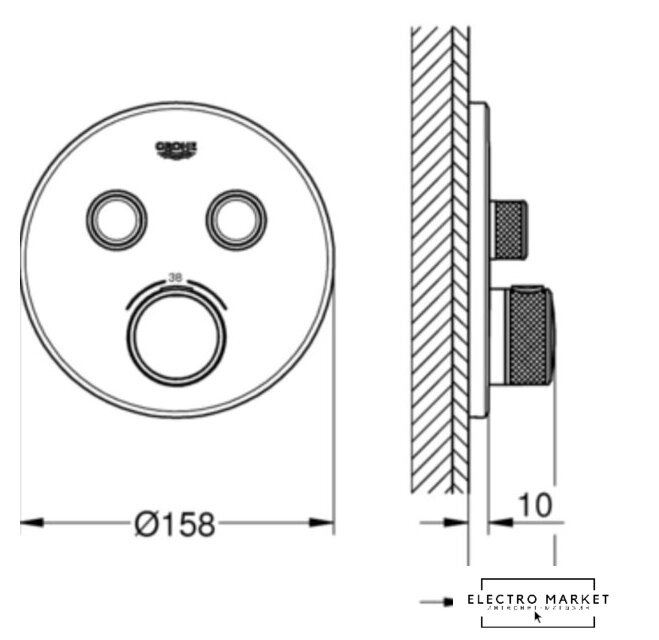 термостатический смеситель для ванны и душа, монтаж скрытый