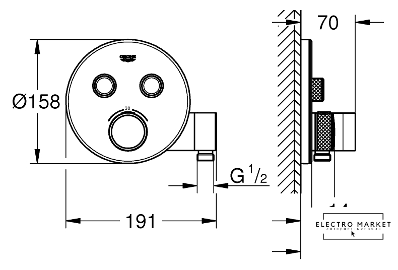 Стопор безопасной температуры | 38 ° (ограничитель до 43° в комплекте) |