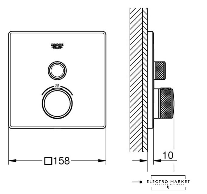 термостатический смеситель для ванны и душа, монтаж скрытый
