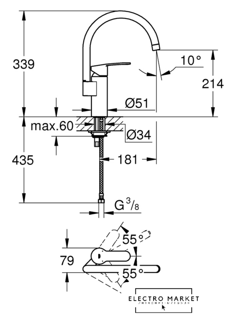 однорычажный смеситель для кухни, монтаж на раковину или столешницу