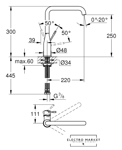 Поворотный излив | 360 ° |