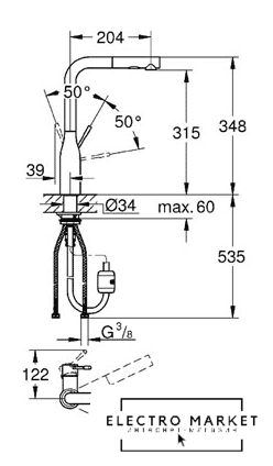 однорычажный смеситель для мойки, монтаж на раковину или столешницу
