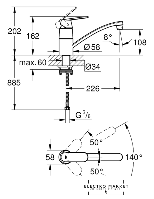 однорычажный смеситель для умывальника, монтаж на раковину или столешницу