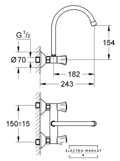 однорычажный смеситель для ванны и душа, монтаж на стену