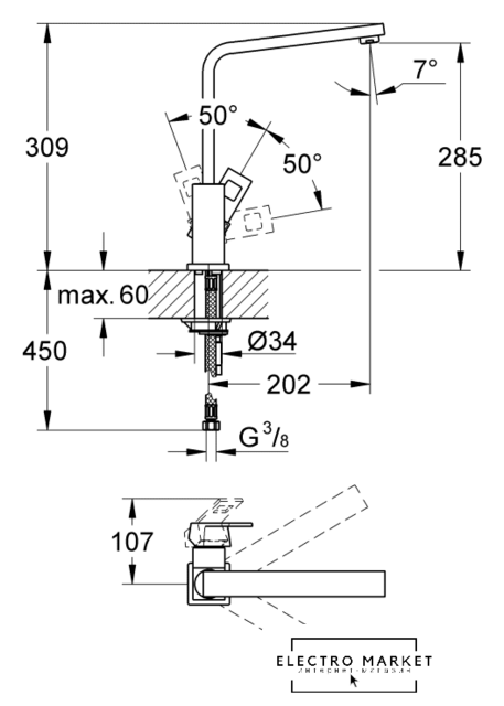 однорычажный смеситель для мойки, монтаж на раковину или столешницу