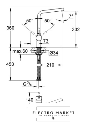 однорычажный смеситель для кухни, монтаж на раковину или столешницу