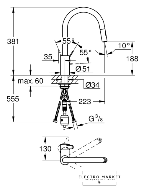 однорычажный смеситель для кухни, монтаж на раковину или столешницу
